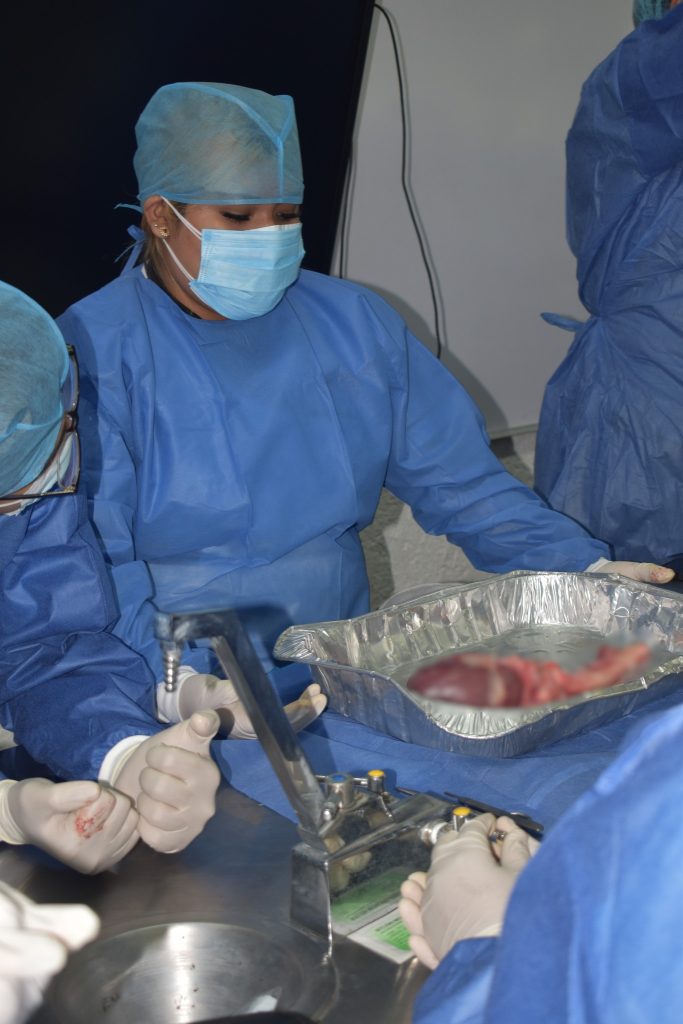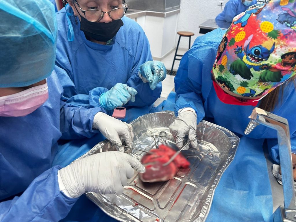 Durante la sesión, los alumnos efectuaron la disección de corazones de cerdo y res, con el objetivo de identificar la anatomía y fisiología cardíaca, así como los tejidos que lo conforman: epicardio, miocardio y endocardio.